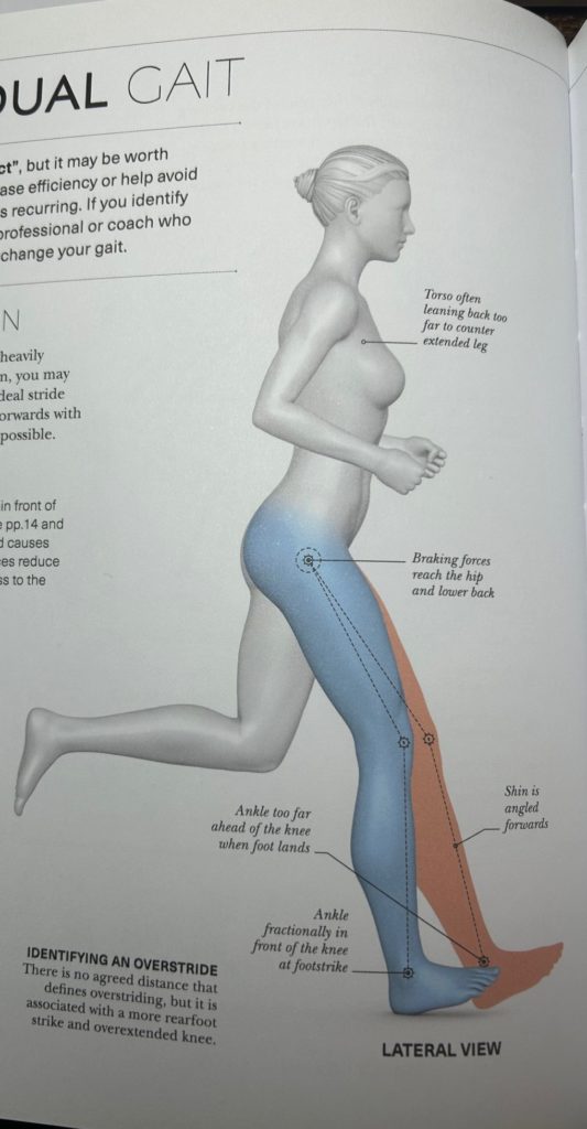We want the foot to land under or just behind the knee so we roll easily through the stride and maintain forward momentum. The easiest way to correct this is not to think about the length of the stride, but instead how many you take. If you try to take lots of small steps then you will naturally shorten your stride length and then bobs your teapot.